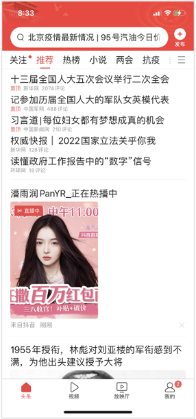 push | 在app内任意场景新增push卡片样式,作为特殊代码位,代码位的配置和展示逻辑同上(需标注“来自抖音”),请求时机媒体决定,一次拉取1条广告 | |||