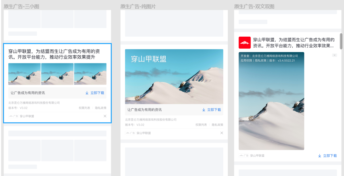 开发者通过广告对象获取广告元素,如标题,描述,logo等自行渲染广告样式