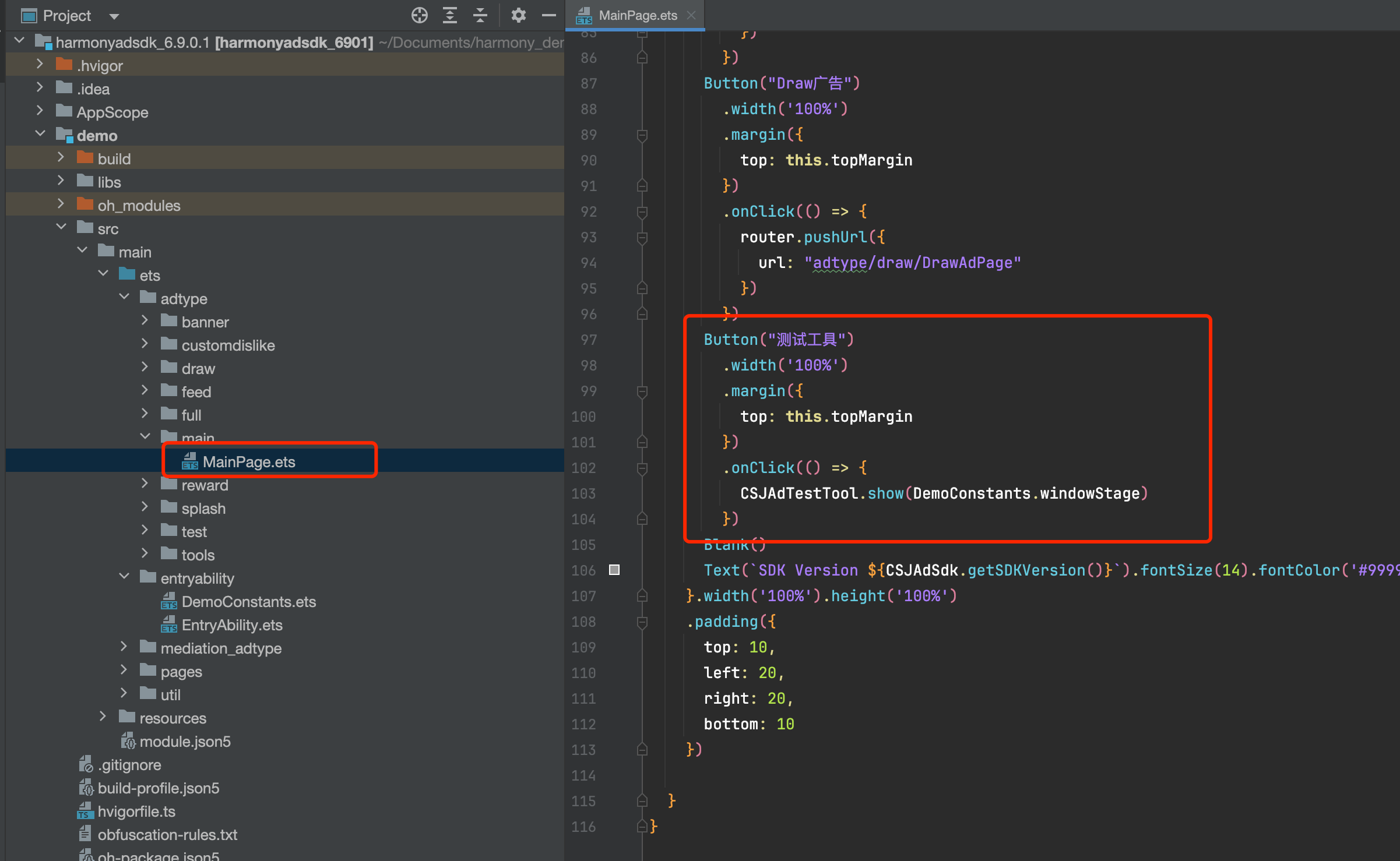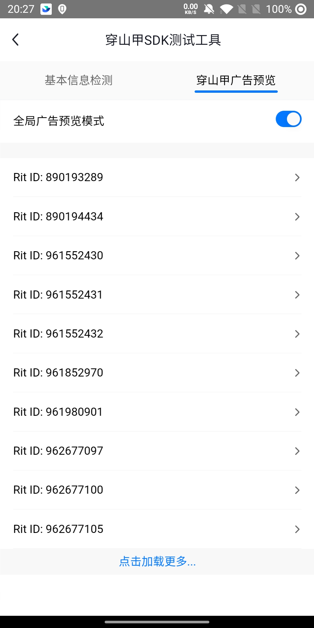 在测试工具中打开全局广告预览模式开关,并配置好需要预览的广告后。可以调用广告load方法加载广告。具体可查看SDK接入文档。