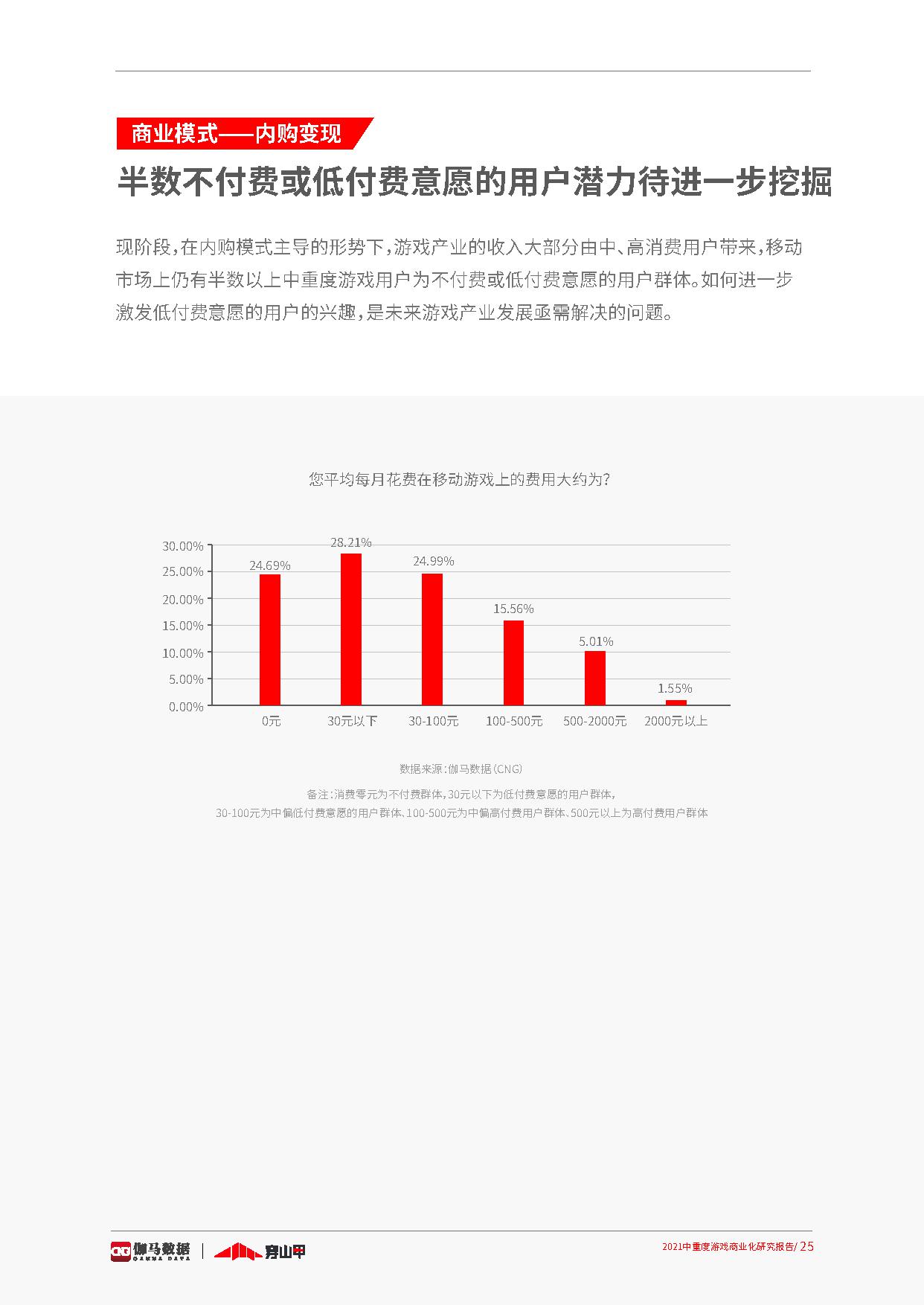 经过二十余年的发展,中重度游戏在玩法上持续拓展,题材也覆盖了多个领域,并引领了客户端游戏、网页游戏、移动游戏等多个细分品类的发展,现阶段在移动产品主导游戏市场的阶段,中重度游戏的商业化模式已具备了较高的成熟度。