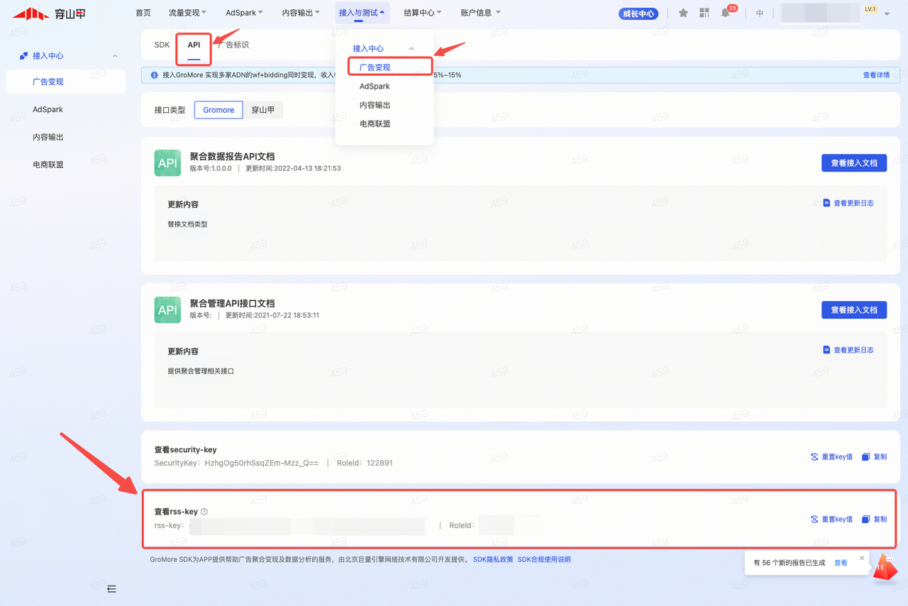 为进一步保障媒体变现收益安全,防范 eCPM 价格被非法篡改导致的用户奖励发放异常、收益损失等风险,穿山甲 & GroMore 7.3.0.0 及以上版本全面升级eCPM 加密防护能力。以下将介绍该能力的 rss-key 生成与申请方式、eCPM 加密串的获取途径、解密规则及多语言解密代码示例,助力开发者快速完成接入。当前支持的范围包括: