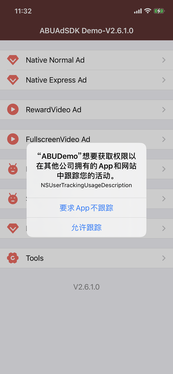 App Tracking Transparency (ATT): Apple 推出的用户授权机制,用于请求用户授权,访问与应用相关的数据以跟踪用户或设备。 目前苹果要求在iOS 14.5及以上必须在弹窗取得用户同意后才可以追踪用户,用户授权之前IDFA 将不可用。 如果用户拒绝此请求,应用获取到的 IDFA 将自动清零,可能会导致您的变现收入的降低。更多详情请参考>>>。
