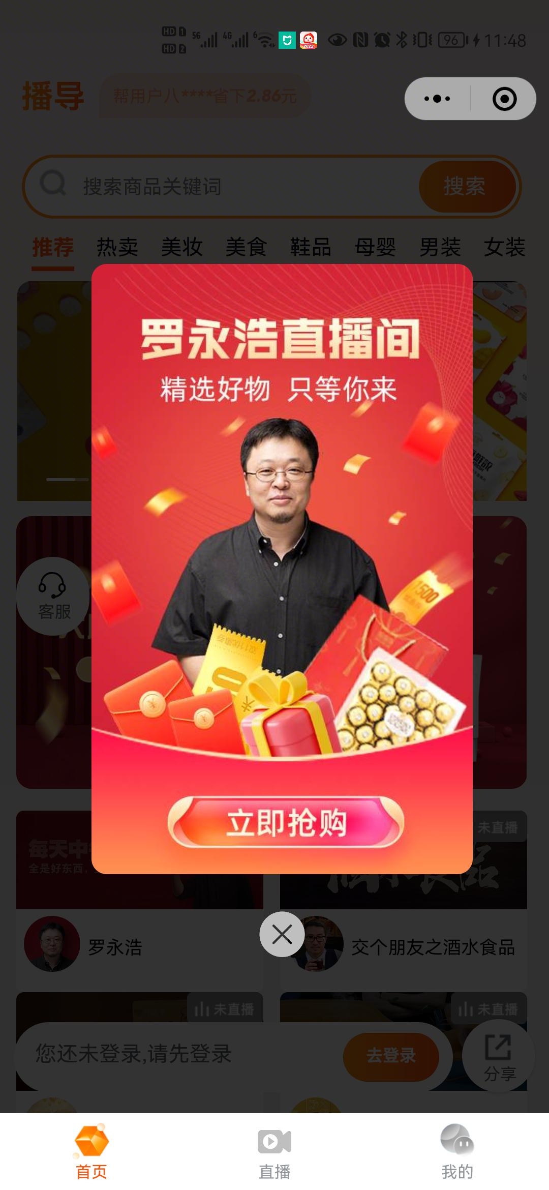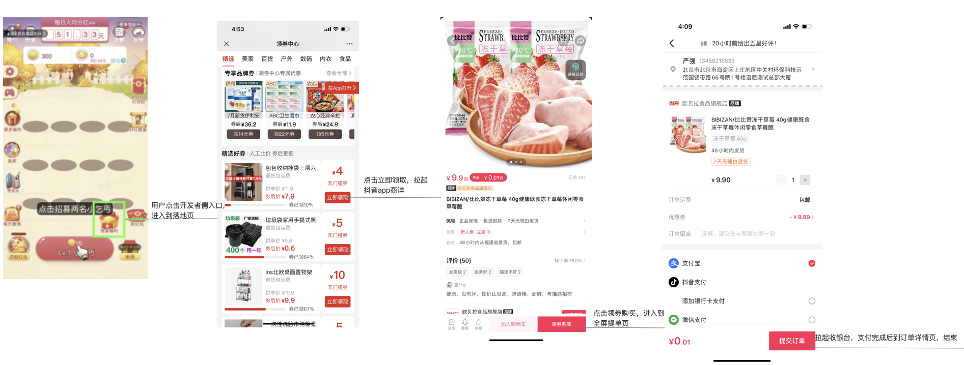 APP用户点击资源位跳转抖音APP进入直播间