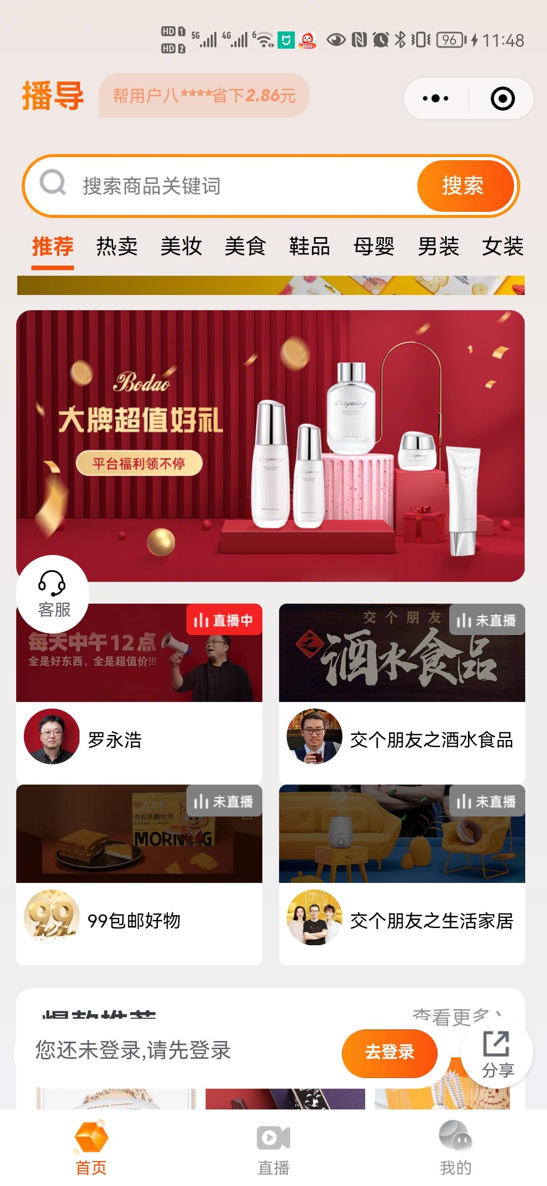 200001 | 未搜索出结果。在商品列表接口和直播列表接口中使用。 |