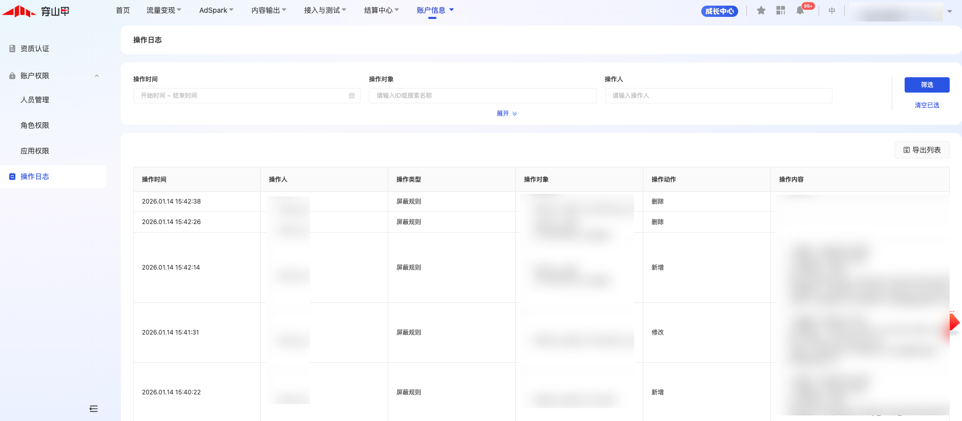 为了降低多角色登录带来的操作风险,穿山甲新上线了操作日志功能,管理员可在操作日志页面查看团队成员的历史操作记录,每一步操作都有迹可循。
