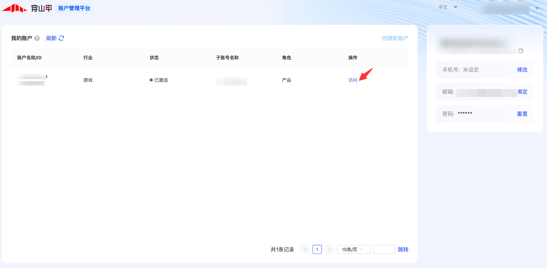点击穿山甲首页【账户信息】即可进入【账户权限】管理页面;