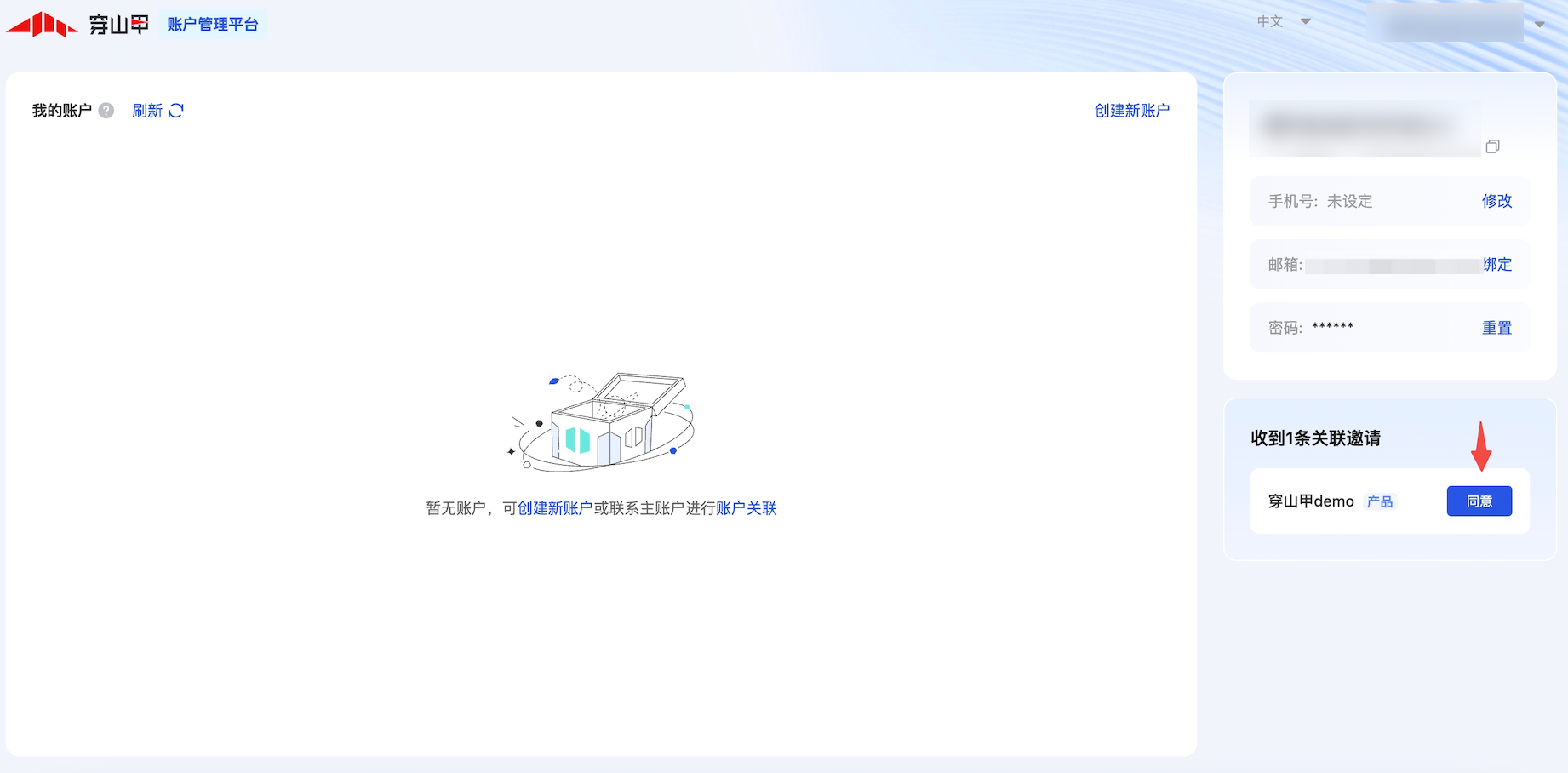 3. 被邀请的人员可访问平台同意邀请,同意后即可访问账户