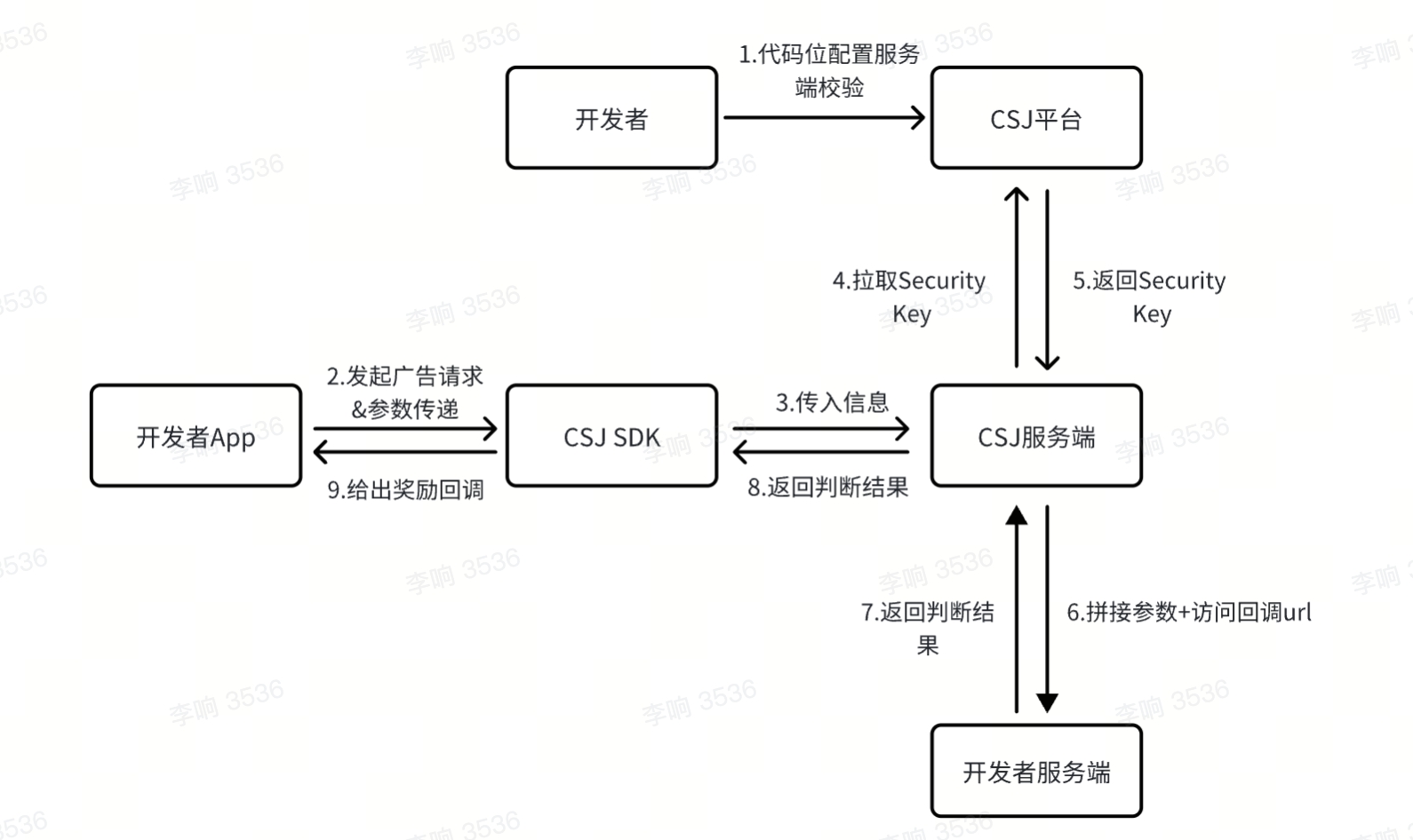 步骤7-8:开发者服务端将判断结果返回穿山甲服务端,CSJ服务端会通过onRewardArrived->isRewardValid透传到客户端
