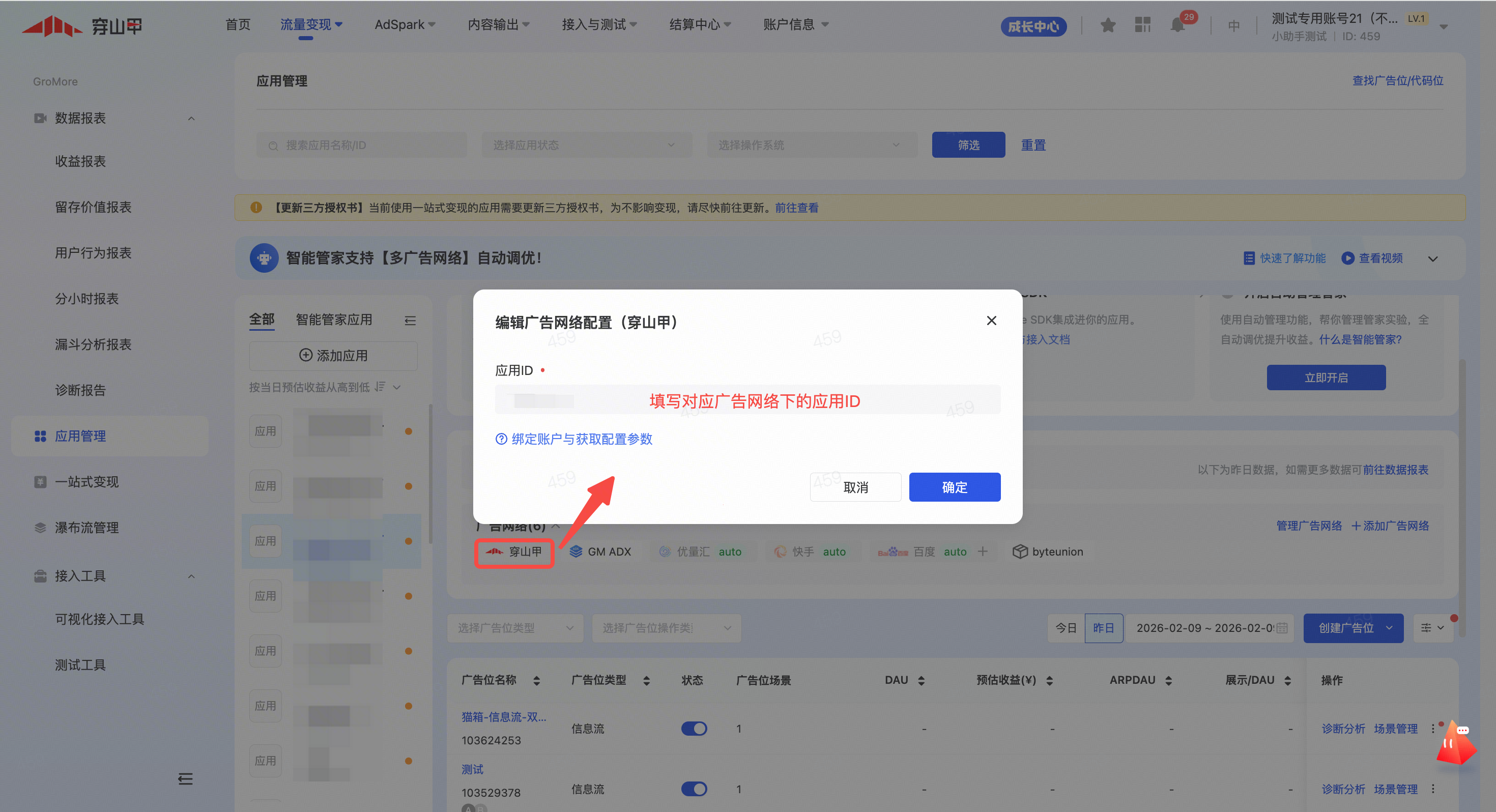 在使用GroMore前需要您先完成基础的穿山甲账户注册和合同签署流程,同时在第三方广告网络平台进行注册并申请相应的代码位,以方便后续配置。选择适合您的三方广告网络平台,有利于丰富瀑布流的竞争环境,助力您的收益最大化,目前GroMore支持的第三方广告网络平台请参考:第三方广告网络接入